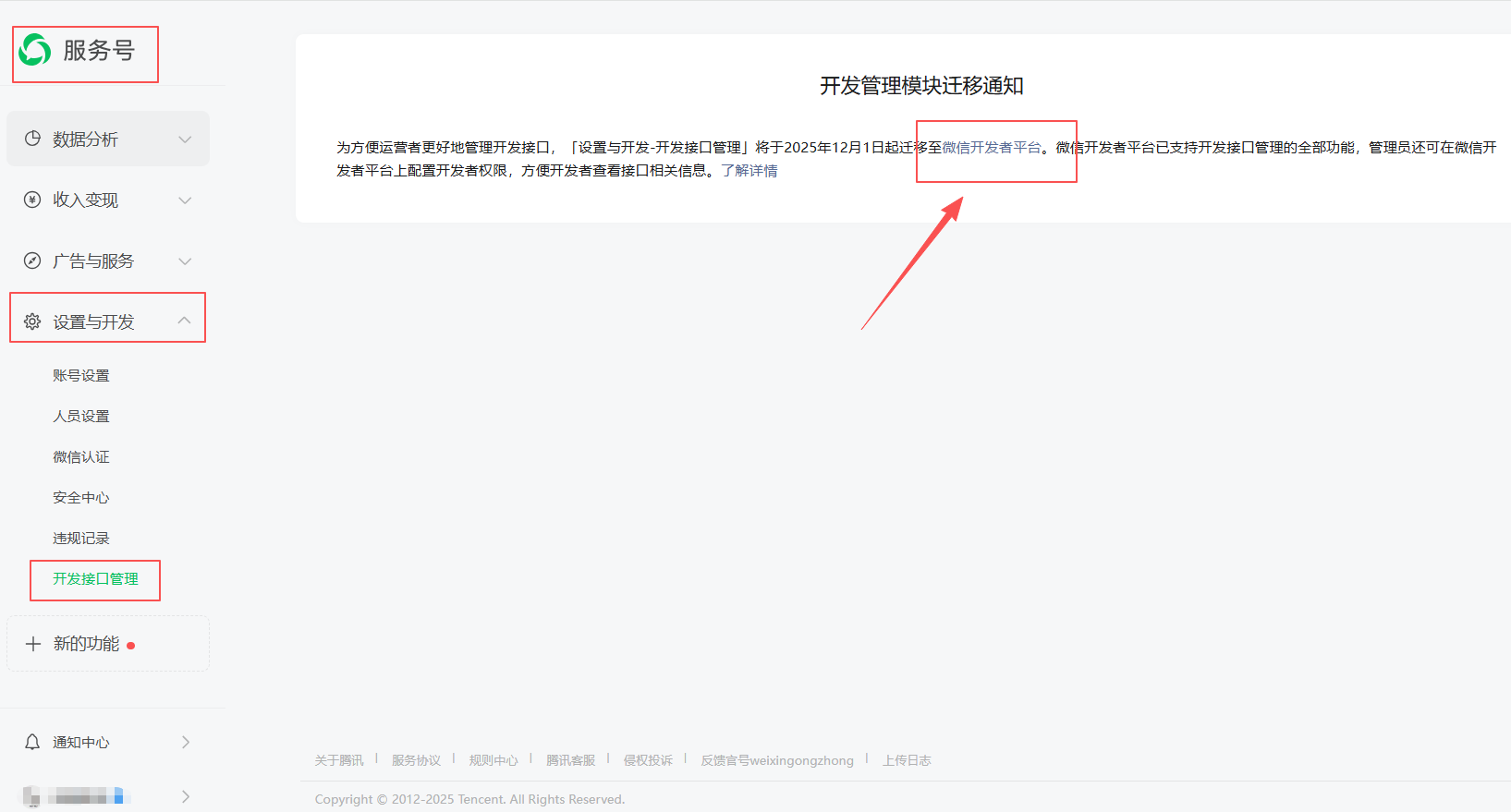 (4)点击“消息推送”的启用,从系统后台获取配置链接