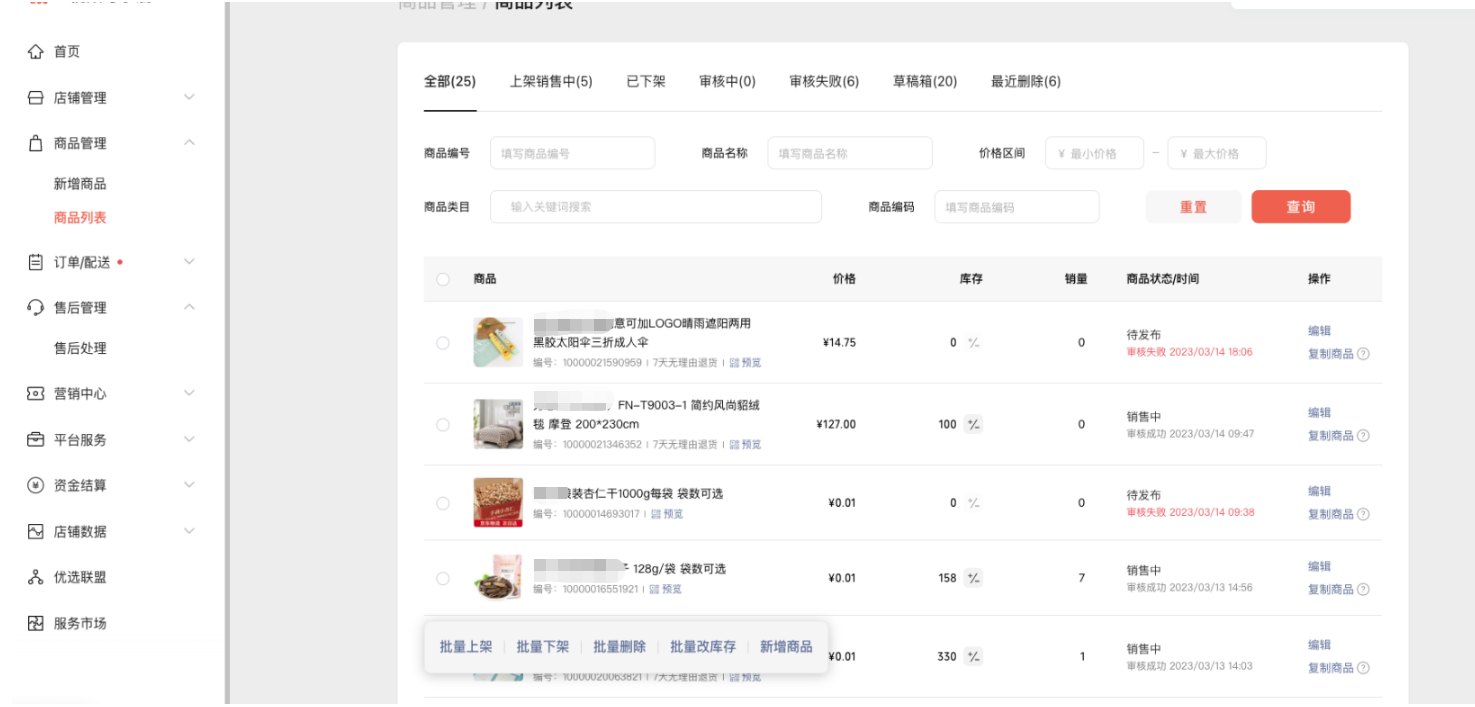 7.草稿数据和线上数据也是显示视频号小店里的商品数据