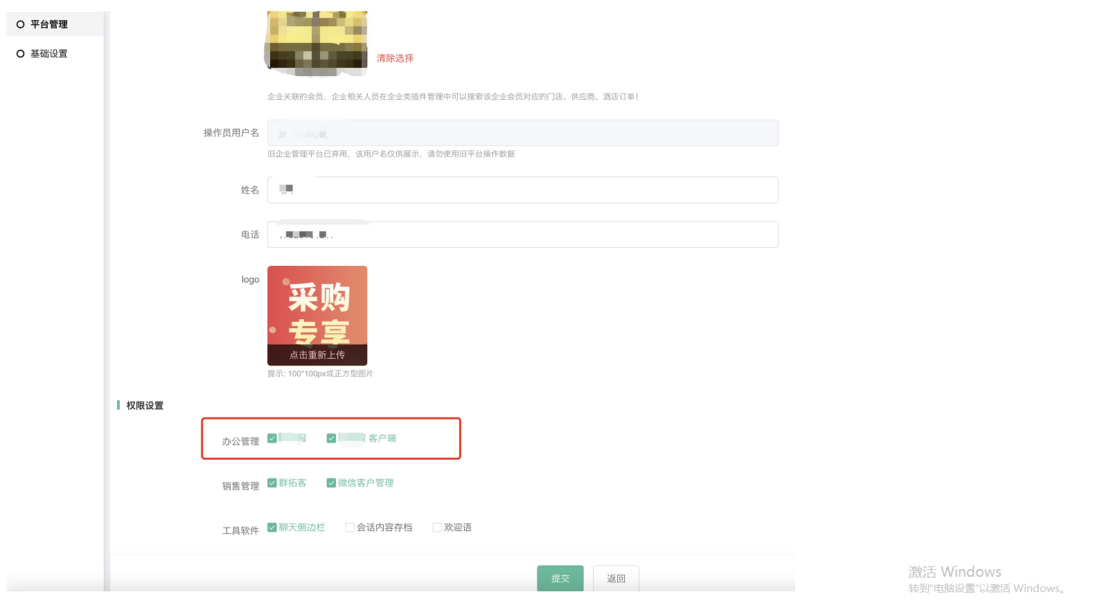【总平台】添加企业/设置企业在线客服应用权限