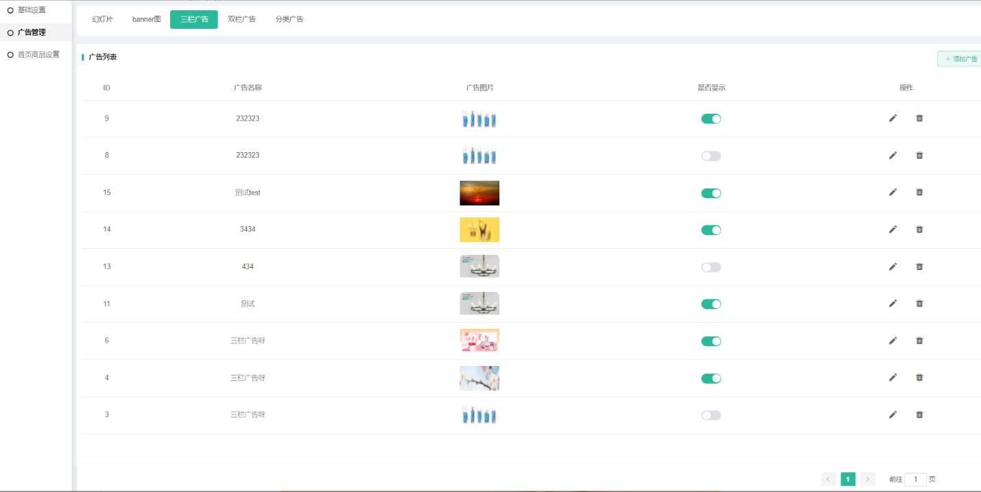 以下为PC端模板1的广告设置。