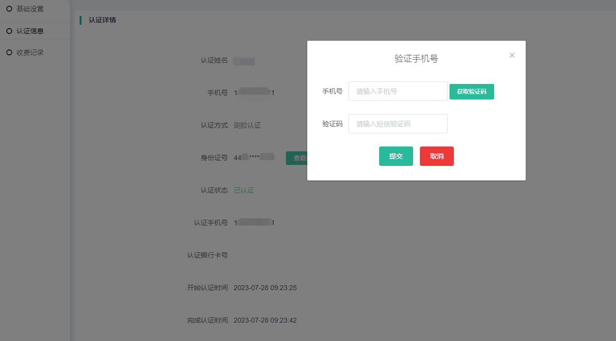 开启实名认证收费会显示在这里,记录列表显示有时间、会员、支付流水号、支付金额、支付方式、操作
