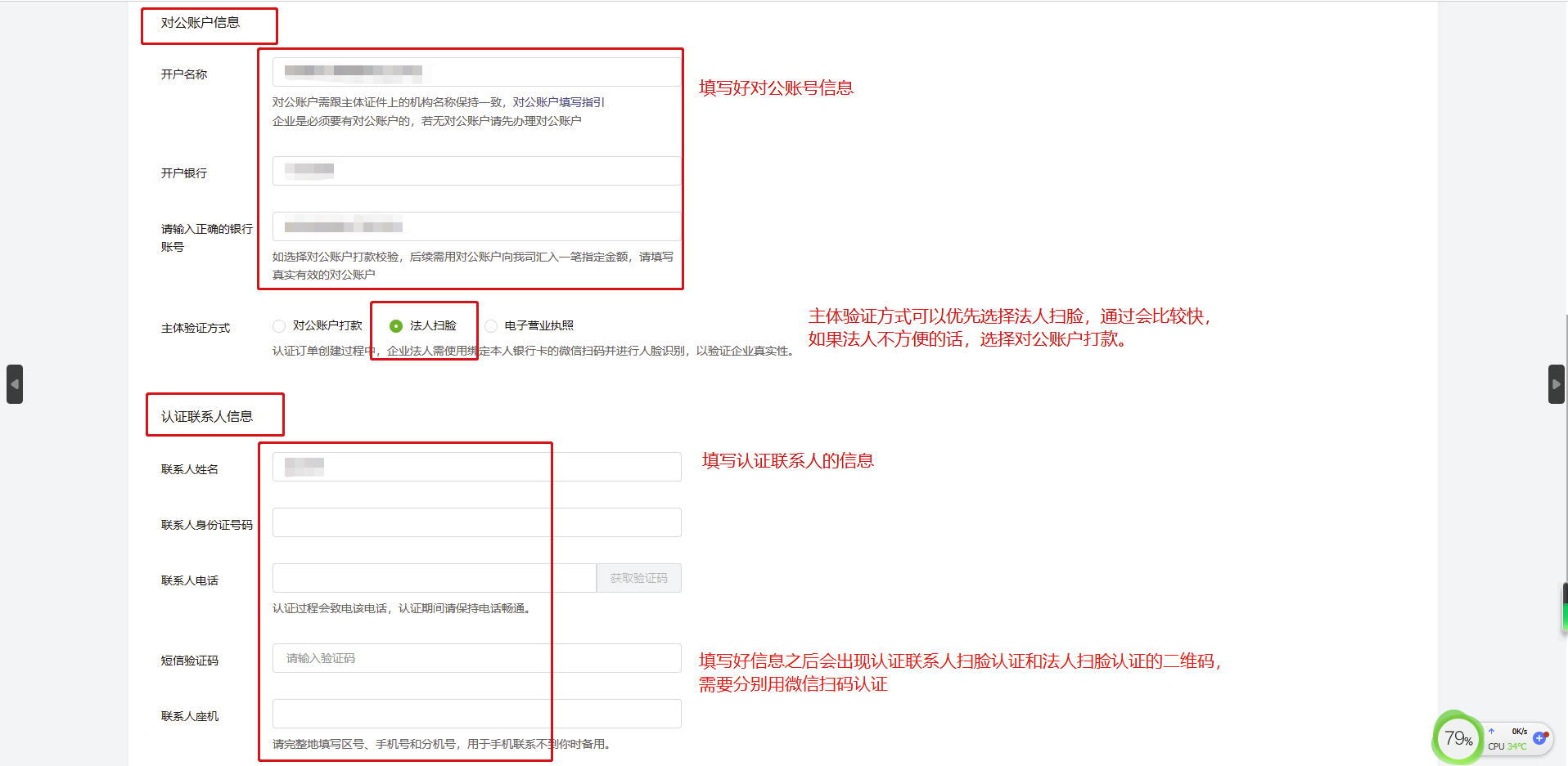 第六步:用微信扫码支付300元、支付完成后等待审核(注意:如果前面选择的是对公账户打款,这时会出现小额打款的信息,进行打款即可)。