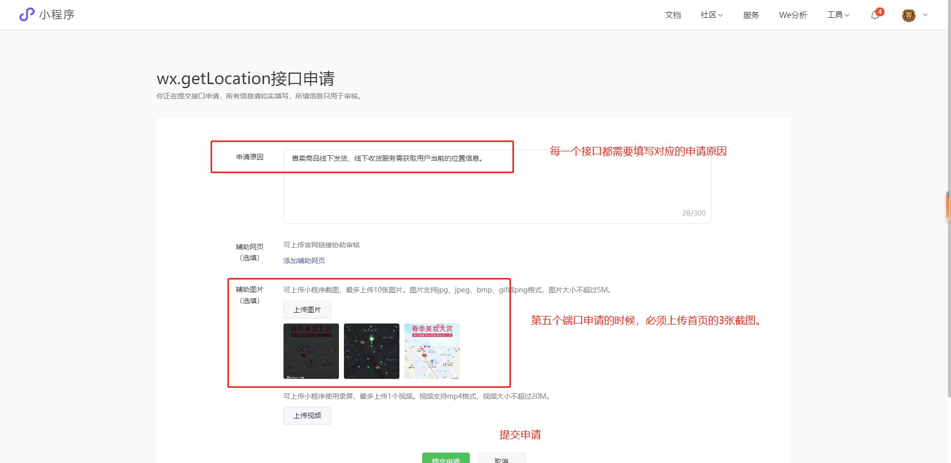 9:小程序后台-开发管理-接口设置处申请开通接口(申请原因如下)