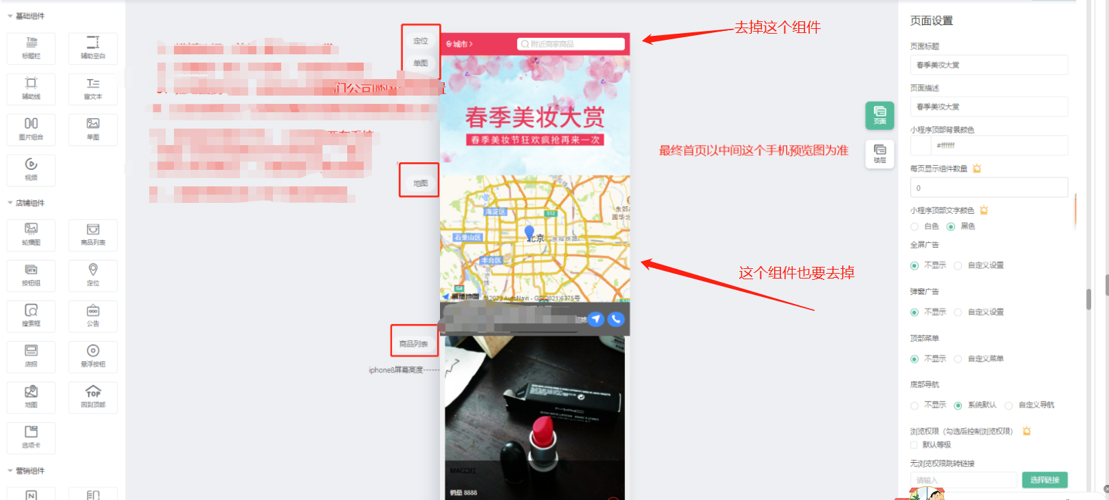 接口审核通过之后,需要回到后台,把审核页面里面的定位组件删掉,只留单图和一个商品,商品模板需要选择第二个
