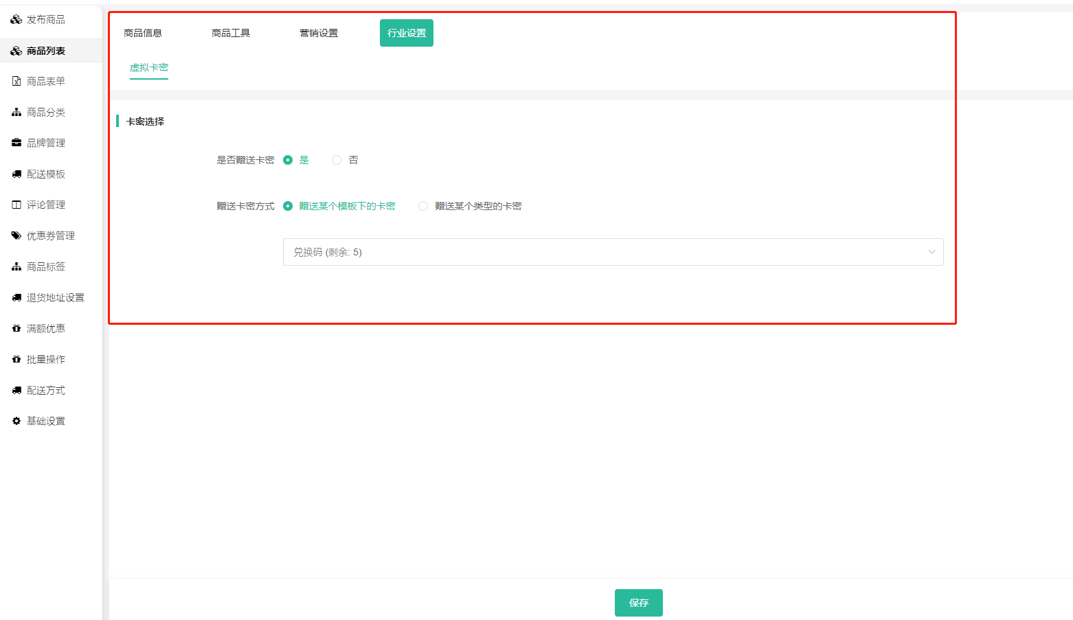 三 、 商品列表需要--编辑商品-虚拟卡密,购买这件商品是否赠送卡密