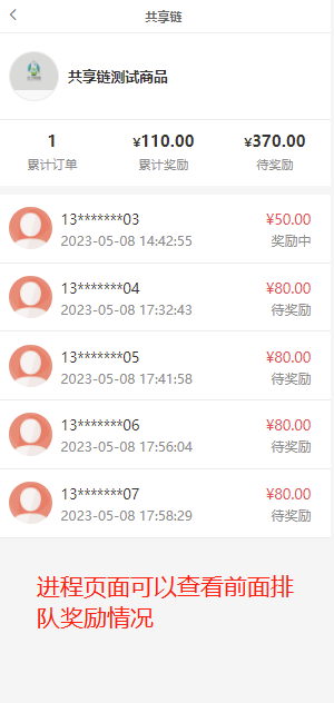 客户前端共享链奖励统计页面:
