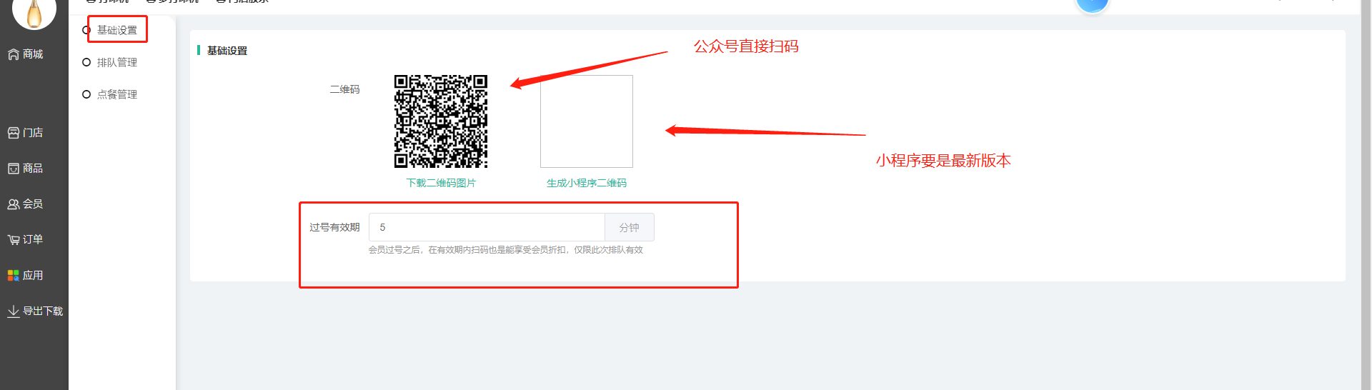 二、商城后台设置排队时间段,首单超时优惠;门店独立后台获取门店排队码,会员扫码排队;排队时间超时在时间段内首次下单可获得超时优惠