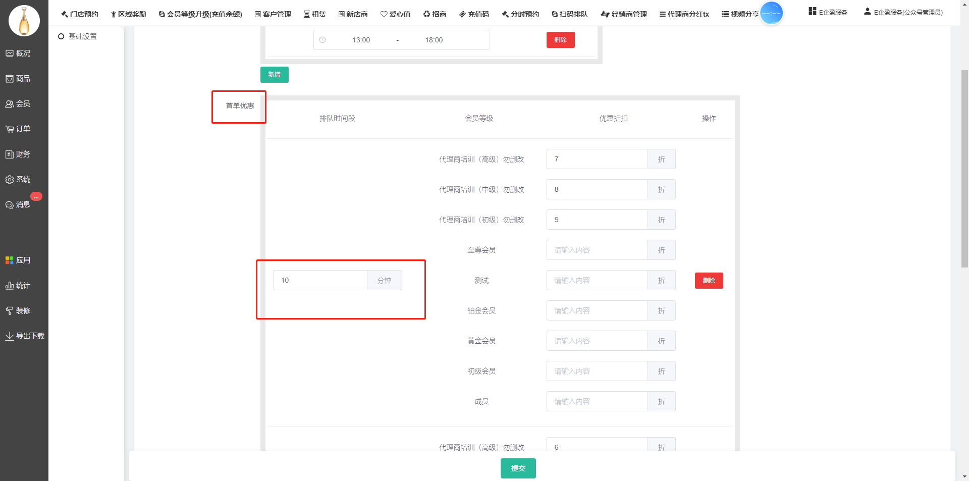 2)首次扫码点餐支付享受优惠,就餐再次扫码支付不再享受折扣。 按会员等级、排队时长设置不同的折扣,排队开始时候按会员扫码时间开始计算,结束时间按扫码开始点餐就结束。