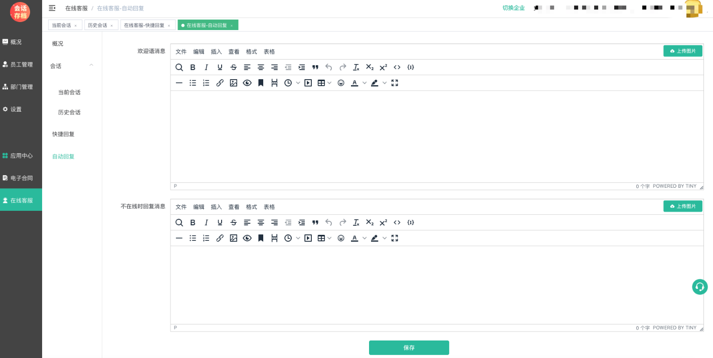 客服支持设置欢迎语、不在线时自动回复。