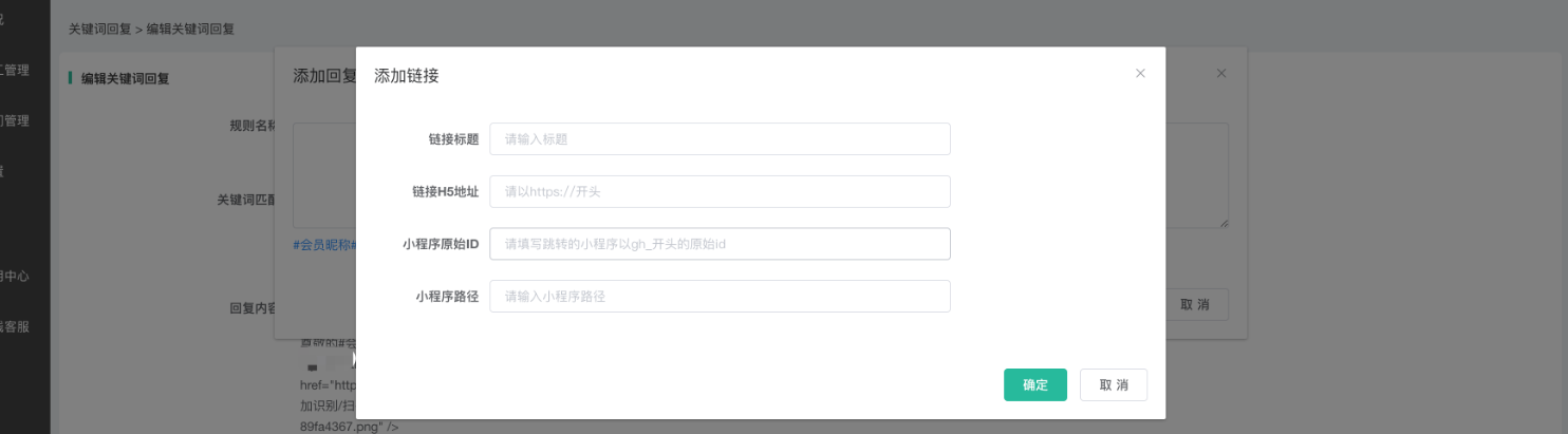 添加链接、小程序跳转内容,如下图: