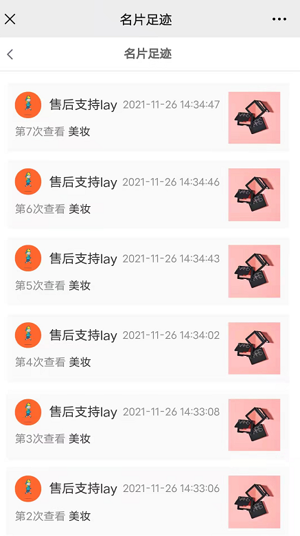 8,访客足迹:用户通过你的名片访问商品的足迹